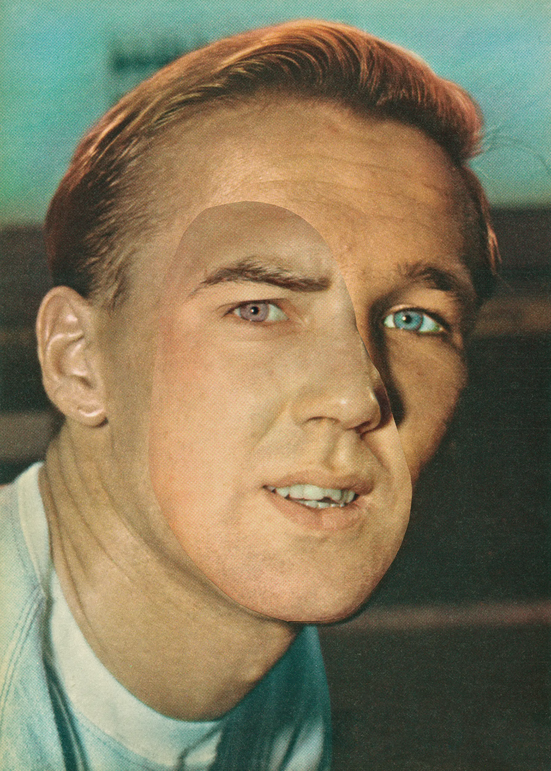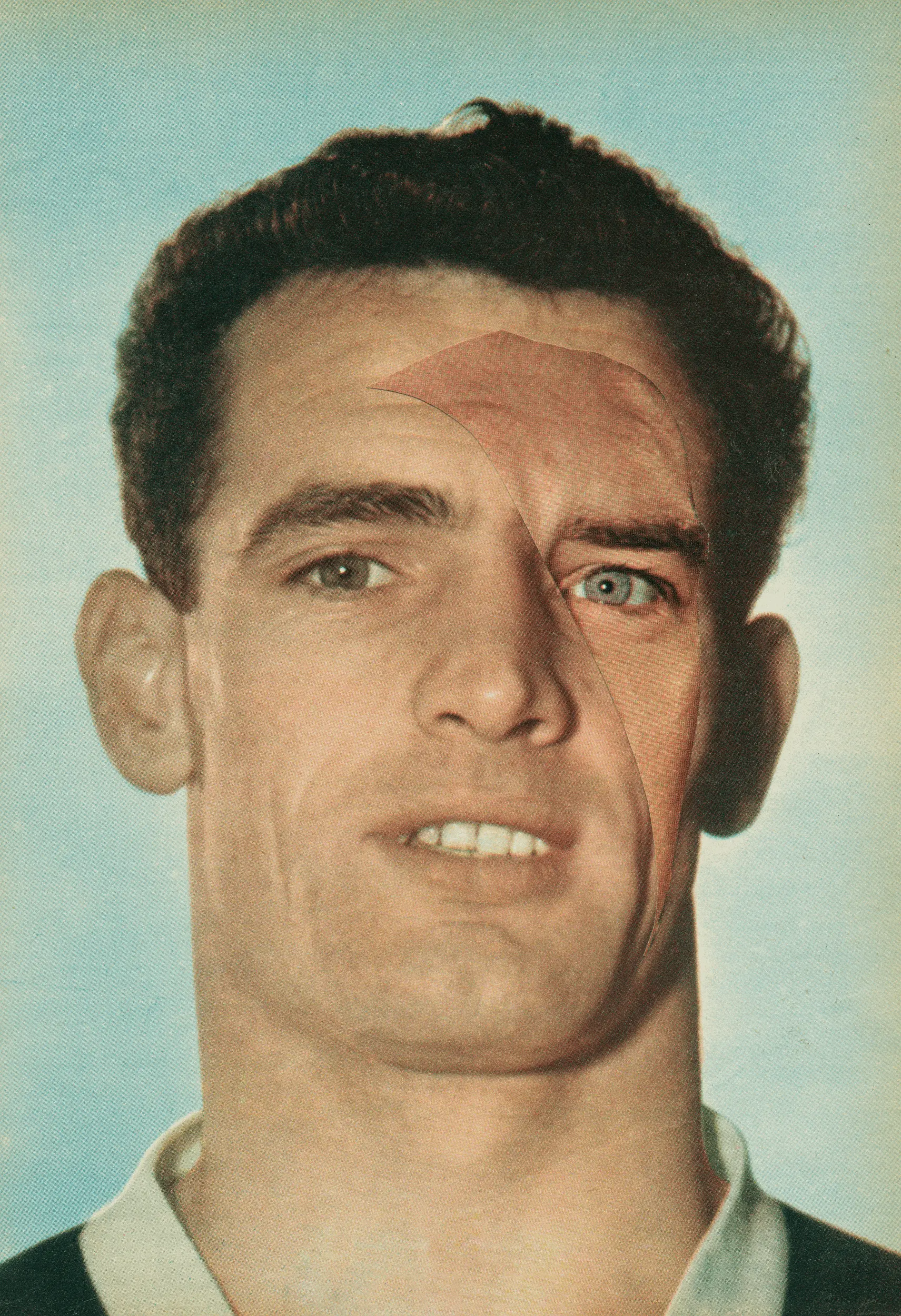 In Ireland and the UK men are three to four times more likely to commit suicide than women,1 with suicide being the leading cause of death amongst males under 25 in Ireland, accounting for 1 in 5 deaths,2 and males aged 20-34 in the UK, with 1 in 4 deaths.3 Whilst many factors are at play in each and every one of these personal and tragic stories, it is often thought that men’s struggle to discuss and articulate their feelings is an underlying factor in this gender gap. It is this topic that forms the genesis of Gabriel Andreu’s Heroes series, a body of work that sees the Spanish artist create composite portraits of footballers. Andreu’s images feature British footballers from the 1960s and 1970s― an era when football teams, and their players, were no longer just sporting institutions but becoming ingredients in wider social identities. In Wexford, the rural Irish county where I grew up, there was no League of Ireland football team and, with options limited, many fans during these decades looked out and across the sea to England for a team. My father and his family were no different. He supported Manchester United, his brother’s home was Highbury, after Arsenal’s home ground, with his sister living in Liverpool’s Anfield―next door to my godfather who lived in Trafford, minus the Old.