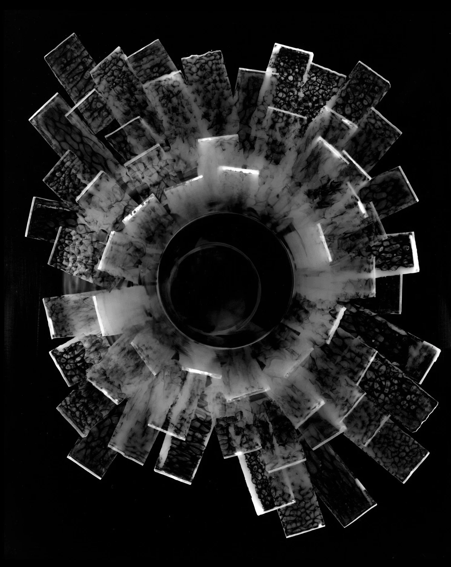 AS you and I unfasten our eyes the boiling bloom of oblivion’s furnace gives way to a vitreous glob of redness pulsing one then two then three then as a fourth and a fifth the carriage returns a sixth a seventh the bell hammer skips passing over nothing for as long as one then two more succeed and again and pausing a moment to punctuate then again this divine geometric breath emits a further five for as long as the four plus none before a percussion of ten sounds out this oneiric tabernacle of twenty eight suns times twenty four tracing a nirvanal calendar where inexorable bodies are drawn to brush in moments of entropy that stave off the aching homelessness of the spirit as lonely diligent monks lurk down chest tight alleys recording guttural utterances between walls of stroboscopic light they measure and fabricate mesmerised under the wheezing sky the ashes of words tumble silent scattered adrift in gaseous helpless feeble clouds of gravity each sweep of the backhand of annihilation is met with the cymatic cupping of dunes that cradle ancient ululations across metropolitan canyons the bullet trains burst doppler their saturnal madrigals in girum imus nocte et consumimur igni trailing möbius carrousels of the dead dead the dead pump the slick bolus drums of arrogant architects as they pace irrational plazas pockmarked in clawing viscous rituals their salamander ladders intersect the ruins of ecstasy a manipulator of shadows prescribes arcs at arm’s length pluming vectorial carriageways over and over across latitudes of illusory efficiency distributing the unbearable weight down downwards down until solid becomes liquid becomes gas set ablaze the kaleidoscope of possibilities grinds saltpetre shafts of darkness punching the chambers of the labyrinth scaffold collapses pierced by rods archives of carbon cameos washed away their blood left to rust in the avernal light the squeeze box crushes and inhales deep in the putrid recesses of flatulent cathedrals mitred molochs turning thoroughly wielded glamours as armours their pious tongues flick spittles of once grammarous gilded venums bellowing their methane mantras as our suns turn blue and stumble through crepuscular crystal arcades of goya gouged faces revolving grease painted in their aspic tanks bitterly preserved and peering through aeons of slippery masques in all their distorted phases the houses of the deaf preside witness empathy’s atrophy in perpetual refrain as the houses of blind cartographers quill cut their bloody tattoos criss crossing tesseract realms of mechanical flesh weighted down under excremental blocks of clandestine machines for as long as it exists for as long as it resists the children of mercury will lie in wait where the glittering teeth of the kimberlite worm bores the walls of mortified time deep sucking the sucker of mind and sleep spurting mangled venous clewes that flower tassels and stain smashed slab upon slab upon sanguineous slab scouting whispering tendrils through the fractures that drain then flow then rage to underworld lakes where twenty eight times twenty four dervishes churn cosmological turbines the blood of orphans until the exchange of heat of eight billion bonds broken erupts a silver stained sentience emerging submerged in the memory of a belief drowned barefoot and hooded we are dredged in the dust of others and yet still what IF?