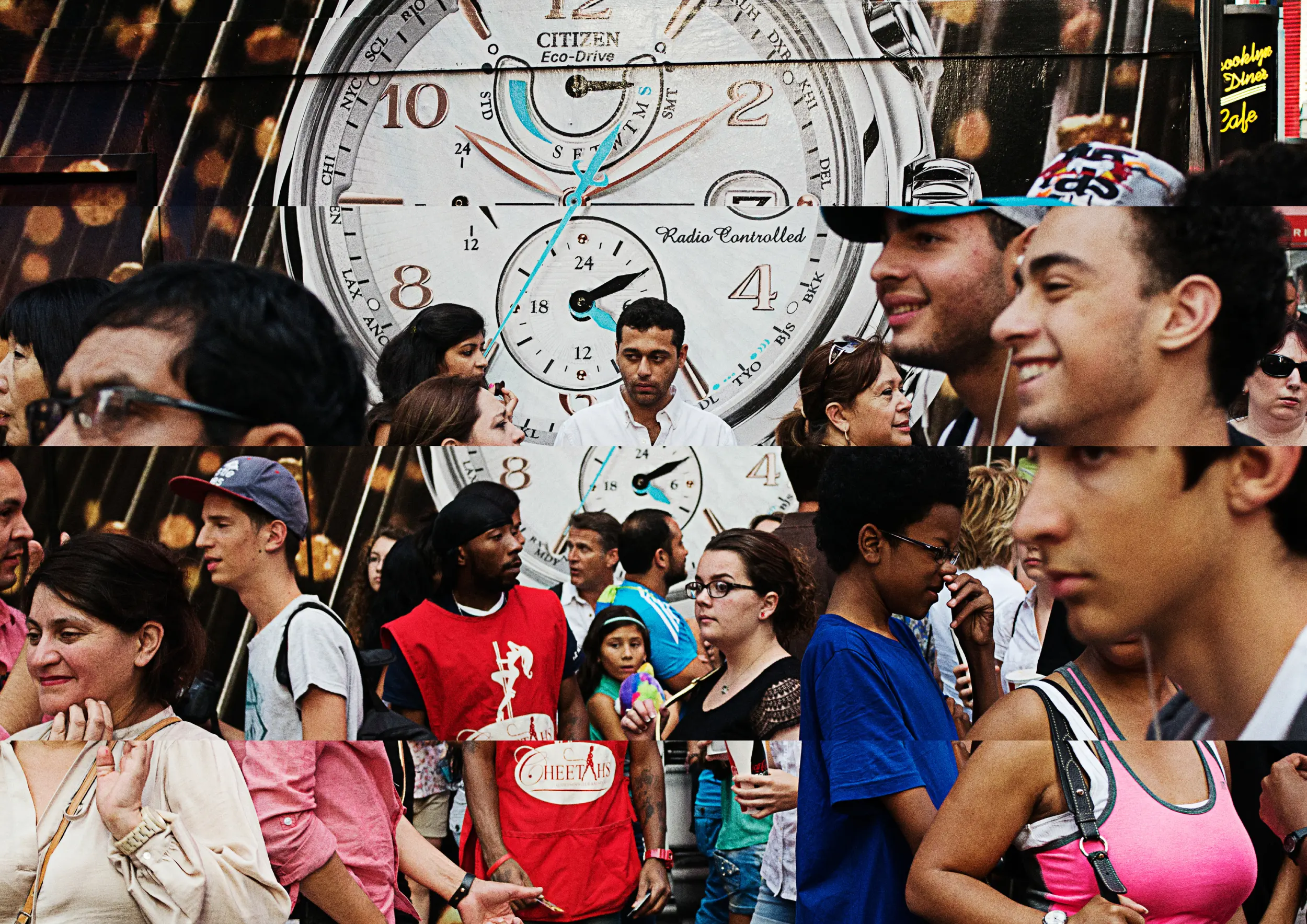 If someone was assigned with taking a sampling of society, a sample that would show societal need to control, sculpt, and that longing to occupy and invade a space, it may be helpful to point them towards New York’s Times Square as a solid starting point. This diverse area is described by artist Hiro Tanaka as “composed of enormous elements between reality and fantasy, emotions, sounds, smells, time, space, and matter under different rhythms, speeds, and senses.” In his project Around 42nd and 7th, Tanaka presents transitory fragments of residents and visitors from different cultures, classes, and nationalities, in an overwhelming, oversaturated, and even frightening metropolis, making such a large space feel surprisingly claustrophobic.