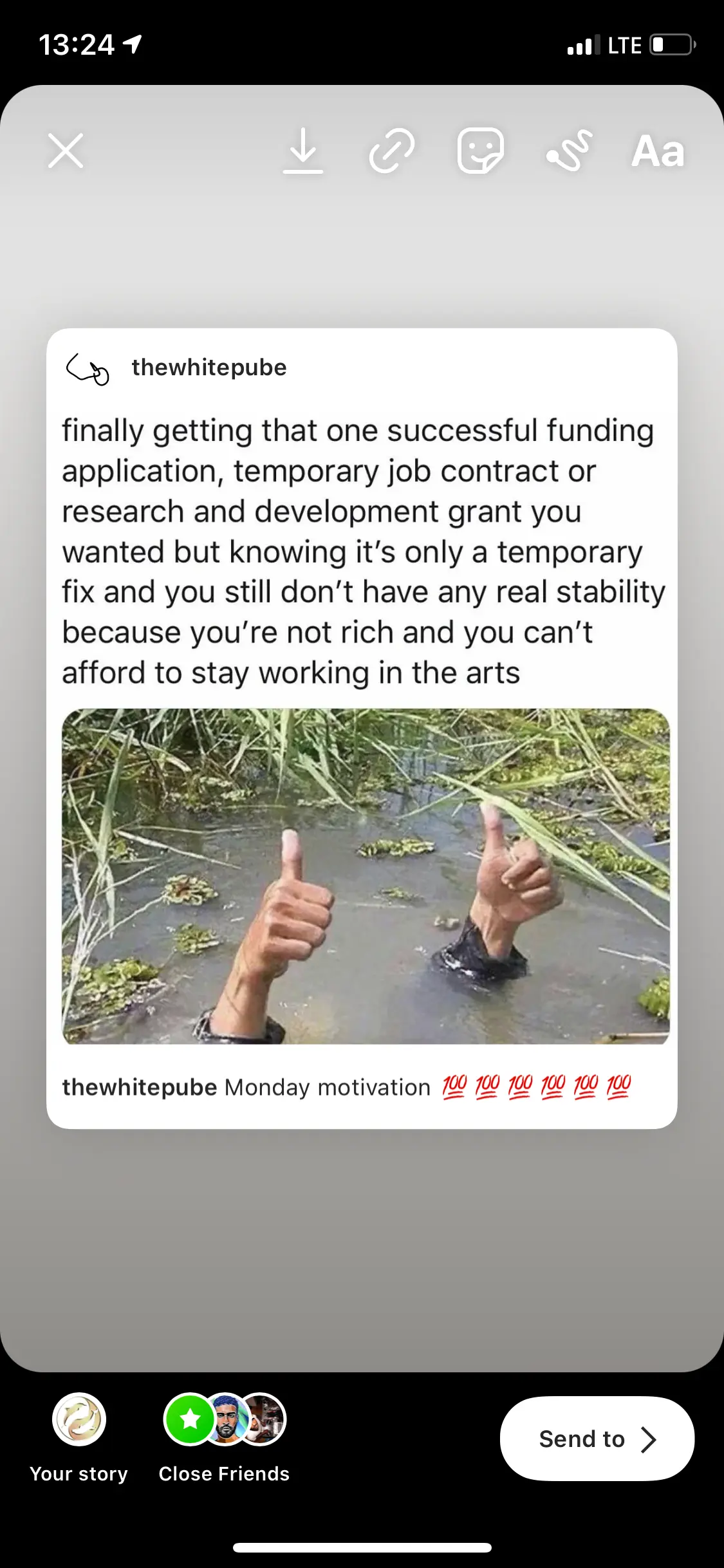 tho, pinpointing solely to macroeconomic factors keeps us from holding ourselves accountable. how am i complicit in creating the structures i say i don’t want? artist/curator/artcritic/writer duo the white pube joined other transparency movements in the arts and made all of their income public. i.e. the shit pay that major institutions make. we need more conversations like this. when we stop to align artistic success with money in the bank we take a step otw to storm that ivory tower. when we create the conditions for money in the bank the second. fuckin’ invite 5 artists less and use the money for a proper fee. decline unpaid shows, talks, tiktok posts.